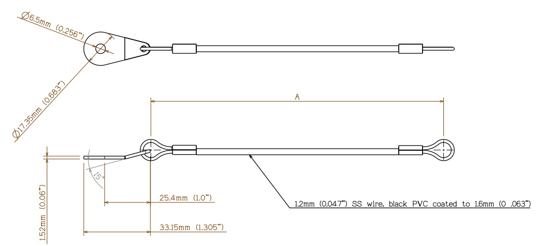 SBPL250ETET is a lanyard with 2 eyelets tabs and a length of 250mm.